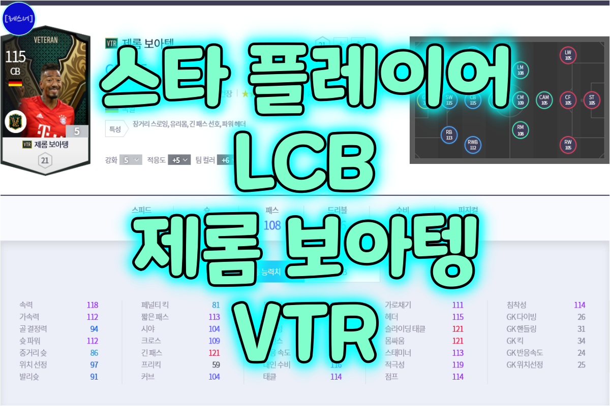 성능과 피지컬이 역시나 1티어 대장급인 VTR 보아텡은 수비중에서는 보기 힘든 양 발을 갖춰