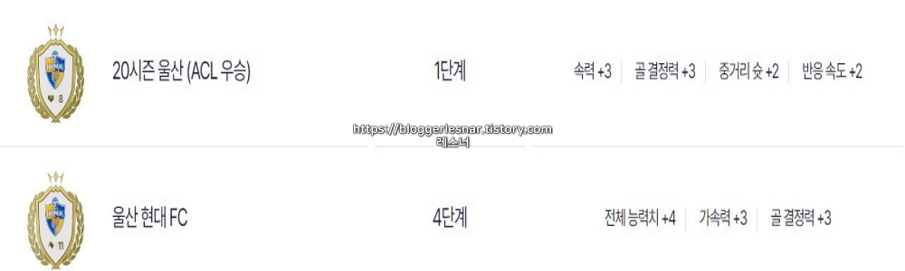 보시는 것처럼 전체 오버롤 4에 추가로 가속력 3과 골 결정력 3이 올라가고